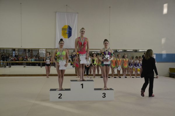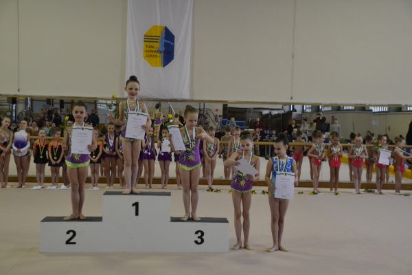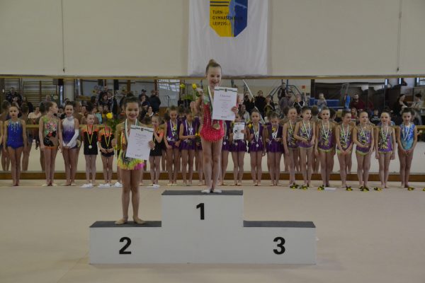Auch in der Kinderklasse bis 9 traten unsere Gymnastinnen gegeneinander an. Hier holte Marta Stryhanuyk Gold, gefolgt von Victoria Hellert mit Silber und Amelie Ermisch mit Bronze. Michelle Parschin konnte sich den 4. Platz vor Hanna Kapitanova sichern.