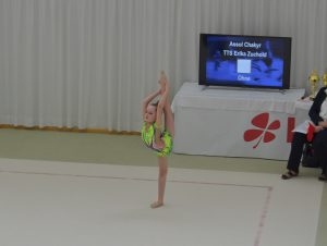 Von insgesamt 19 teilnehmenden Gymnastinnen in der Altersgruppe KLK 9 belegte in der Einzelwertung Assol Chakyr einen wunderbaren 8. und Emily Schwez einen respektablen 12. Platz.